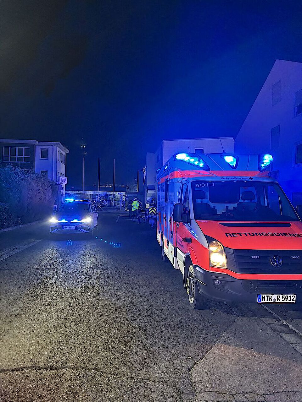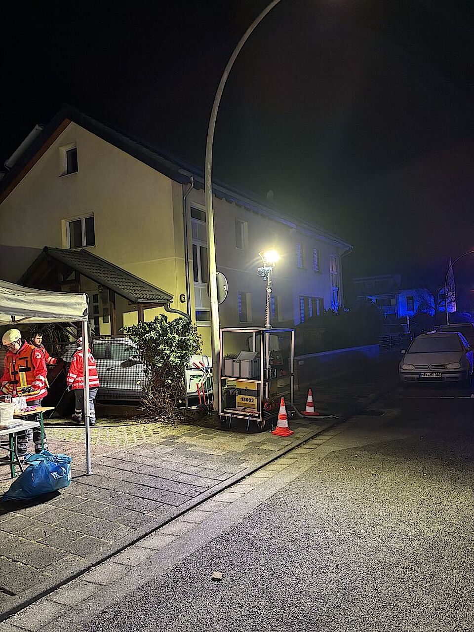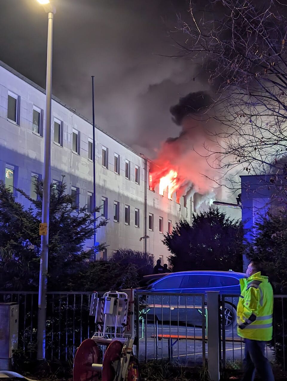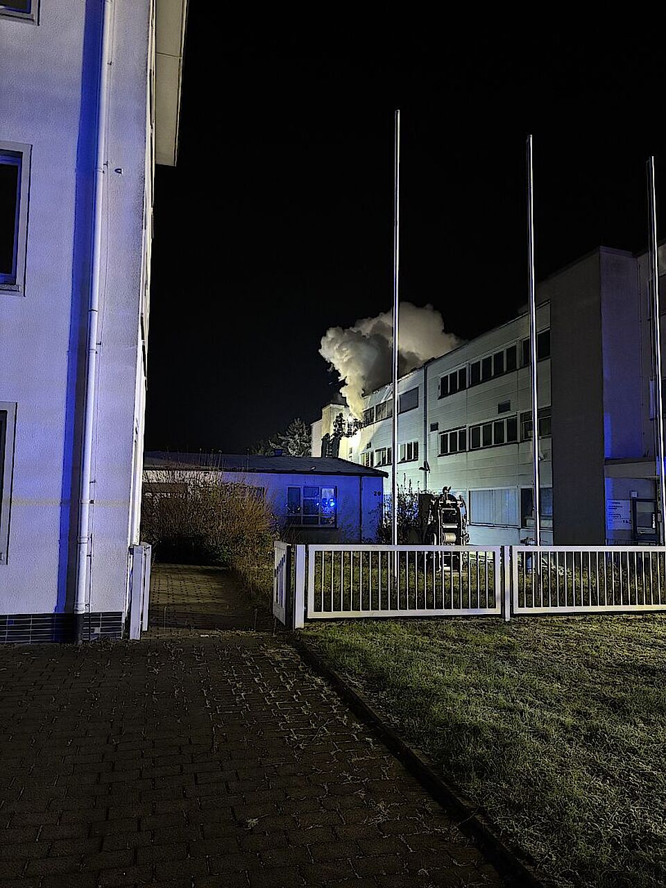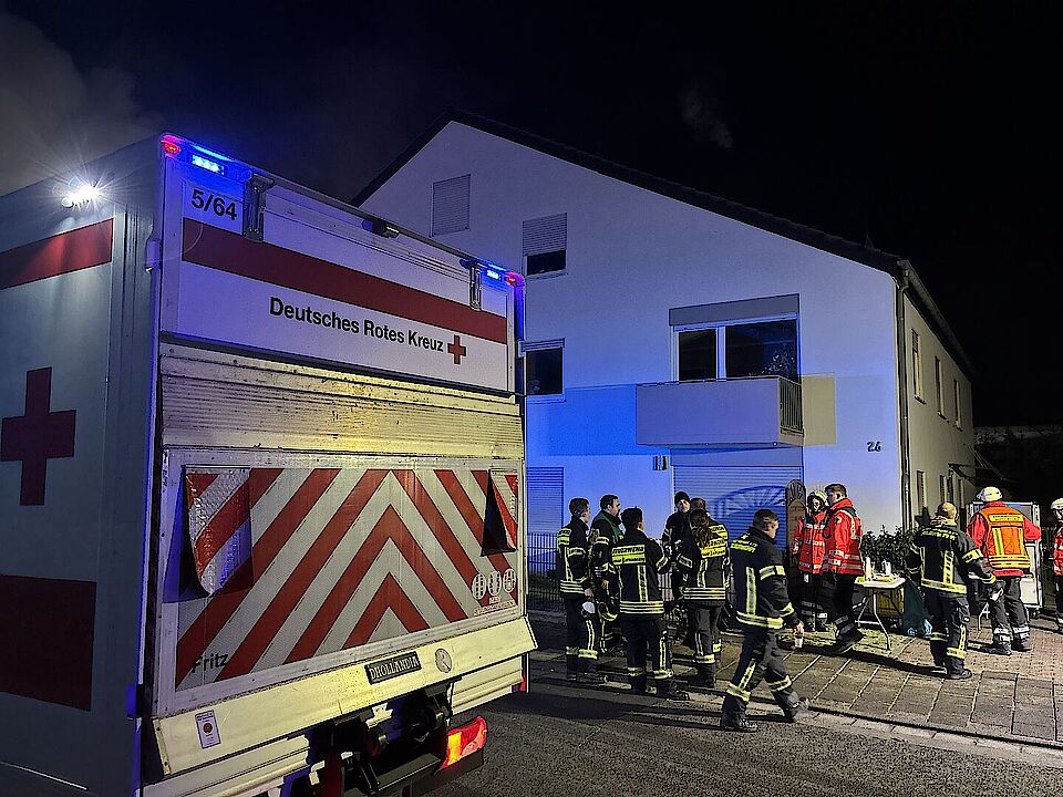 In der Nacht zu Dienstag wurden wir gemeinsam mit den Feuerwehren der Stadt Hattersheim zu einer ausgelösten Brandmeldeanlage in die Schulstraße alarmiert. Bei Eintreffen drang dichter Rauch aus dem Dachbereich. Schnell kam es zu einer Durchzündung und die Etage stand in Flammen. Zunächst standen wir mit unserem Krankentransportwagen und einem Rettungswagen der Wache Hofheim in Bereitstellung, um die Feuerwehreinsatzkräfte medizinisch abzusichern. Aufgrund der rasanten Entwicklung wurde das Einsatzstichwort erst auf "Feuer in Gebäude [F2]" und später auf "Ausgedehnter Brand in Sondergebäuden [F3]" erhöht. Bei eisigen Temperaturen wurde der 1. Betreuungszug des DRK (Hattersheim, Okriftel/Eddersheim und Kriftel) zur Versorgung der Einsatzkräfte mit Heiß- und Kaltgetränken sowie einer warmen Mahlzeit hinzugezogen. Zunächst kam hierzu der Gerätewagen-Logistik zum Einsatz, welcher in kürzester Zeit autark Kaffee und Tee sowie Pizzabaguettes bereitstellen kann. Weitere Mahlzeiten wurden auch durch die Versorgungsgruppe an die Einsatzstelle gebracht. Das DRK Hattersheim betrieb mit den Kameradinnen und Kameraden aus Okriftel/Eddersheim und Kriftel die Verpflegungsstelle. Wegen der langen Einsatzdauer wurden wir personell vom 2. Betreuungszug der Malteser aus Kelkheim unterstützt. Nach rund 12 Stunden war der Einsatz für das DRK beendet. Nun läuft die Nachbereitung (Auftanken der Notstromgeneratoren, Wiederherstellung der vollständigen Einsatzbereitschaft).